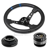 NRG-SRK-101H+016R-BK+200BK, NRG Innovations 13.78" 350mm 3" Deep Dish Style Black Leather Blue Center Marking Racing Steering Wheel Combo with 6 Hole Short Hub Adapter with Gen 2.0 Black Quick Release Kit SRK-101H
